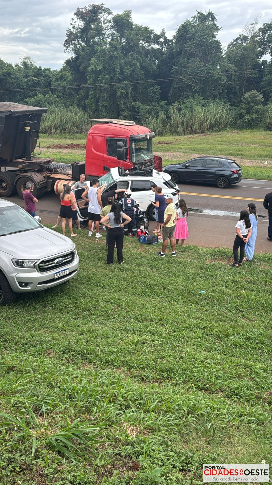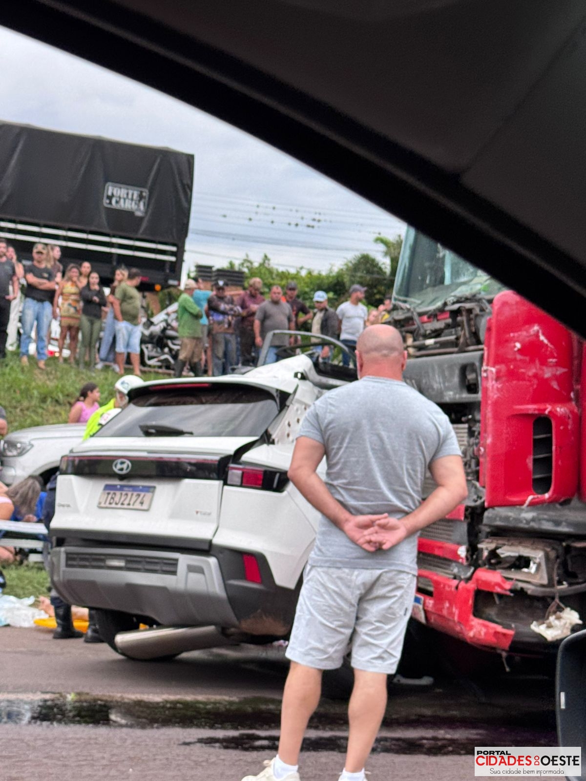 Segundo informações apuradas no local, a família de Toledo viajava em dois carros. No Hyundai Creta estavam a mãe e a filha. Já em outro veículo seguiam o pai e o filho de 10 anos. Ao acessar o trevo, o carro acabou se envolvendo na colisão com um caminhão carregado com farelo de soja, que trafegava no sentido Foz do Iguaçu.