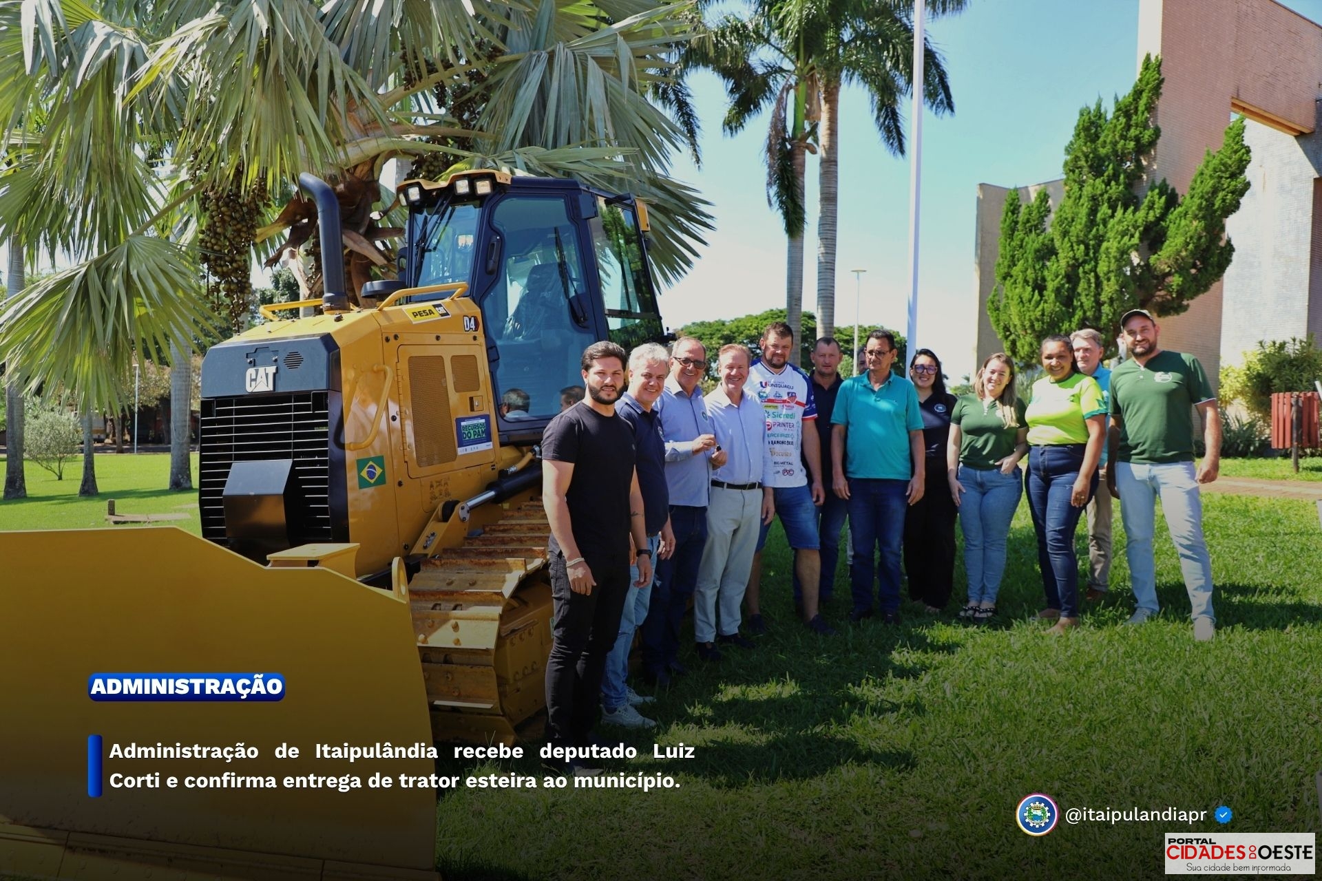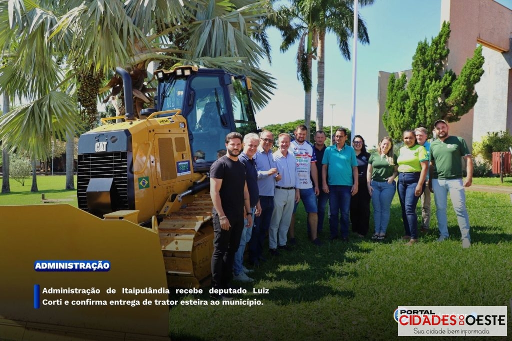 O deputado estadual Luis Corti realizou, na manhã desta sexta-feira, a entrega oficial de um trator esteira ao município de Itaipulândia. O ato ocorreu durante visita ao gabinete do Executivo municipal e contou com a presença do prefeito, vice-prefeito, vereadores e lideranças locais, que acompanharam a formalização do repasse do equipamento.