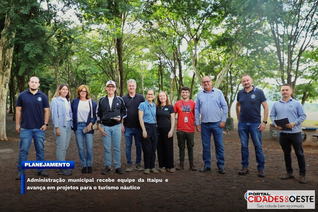A administração municipal realizou, nesta quinta-feira (16), uma série de visitas técnicas com representantes da Itaipu Binacional, com foco no fortalecimento do turismo local. A agenda contou com a participação de equipes da Secretaria de Planejamento e da Secretaria de Turismo e Lazer, que acompanharam os técnicos em pontos estratégicos do município, como o Balneário Jacutinga e a base náutica.