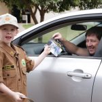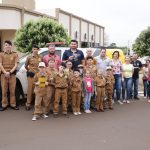 Após a palestra foi realizada blitz em frente a Câmara de Vereadores tendo a participação do policias mirins auxiliando nas abordagens com a entrega d e panfletos e orientando os motoristas