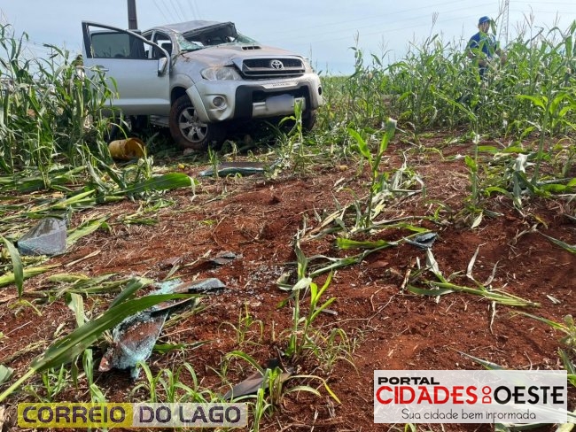 De acordo com informações apuradas no local, uma caminhonete Toyota Hilux seguia no sentido Esquina Céu Azul–Santa Helena, quando teria sido fechada por outro veículo. A manobra fez com que o condutor perdesse o controle da direção, resultando no capotamento.