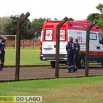 A equipe do Samu foi acionada para levar o paciente do pronto atendimento até a aeronave que pousou no campo do clube União, às margens da Rua Ângelo Cattani em Santa Helena.