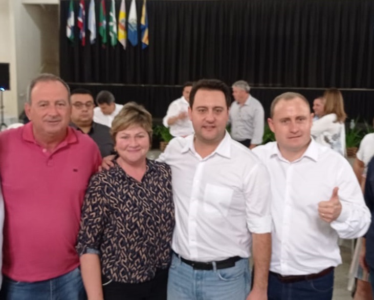 Nesta sexta-feira, 27, a Prefeita Cleide Prates, acompanhada do Vice-Prefeito Lindolfo, do vereador André Royer, empresário Egídio Valiatti e demais convidados, participou de encontro com o governador Ratinho Junior na cidade de Santa Helena.