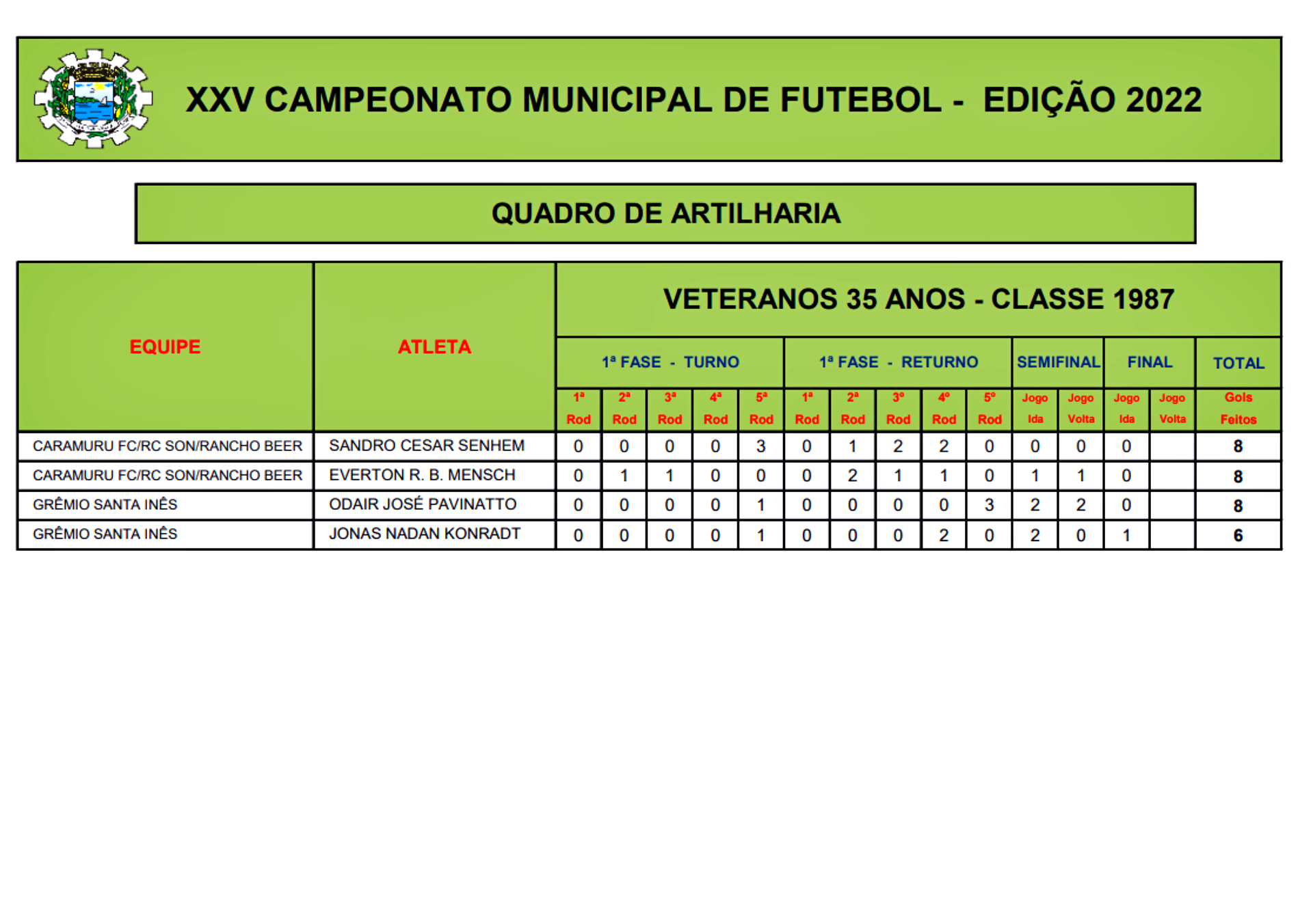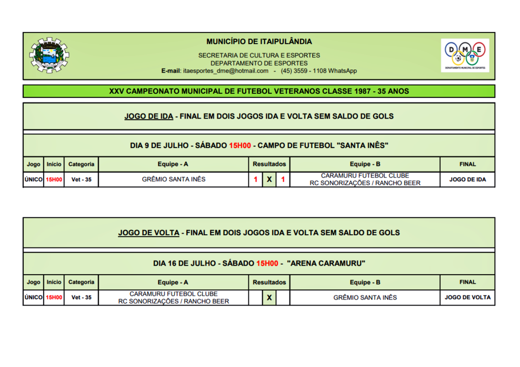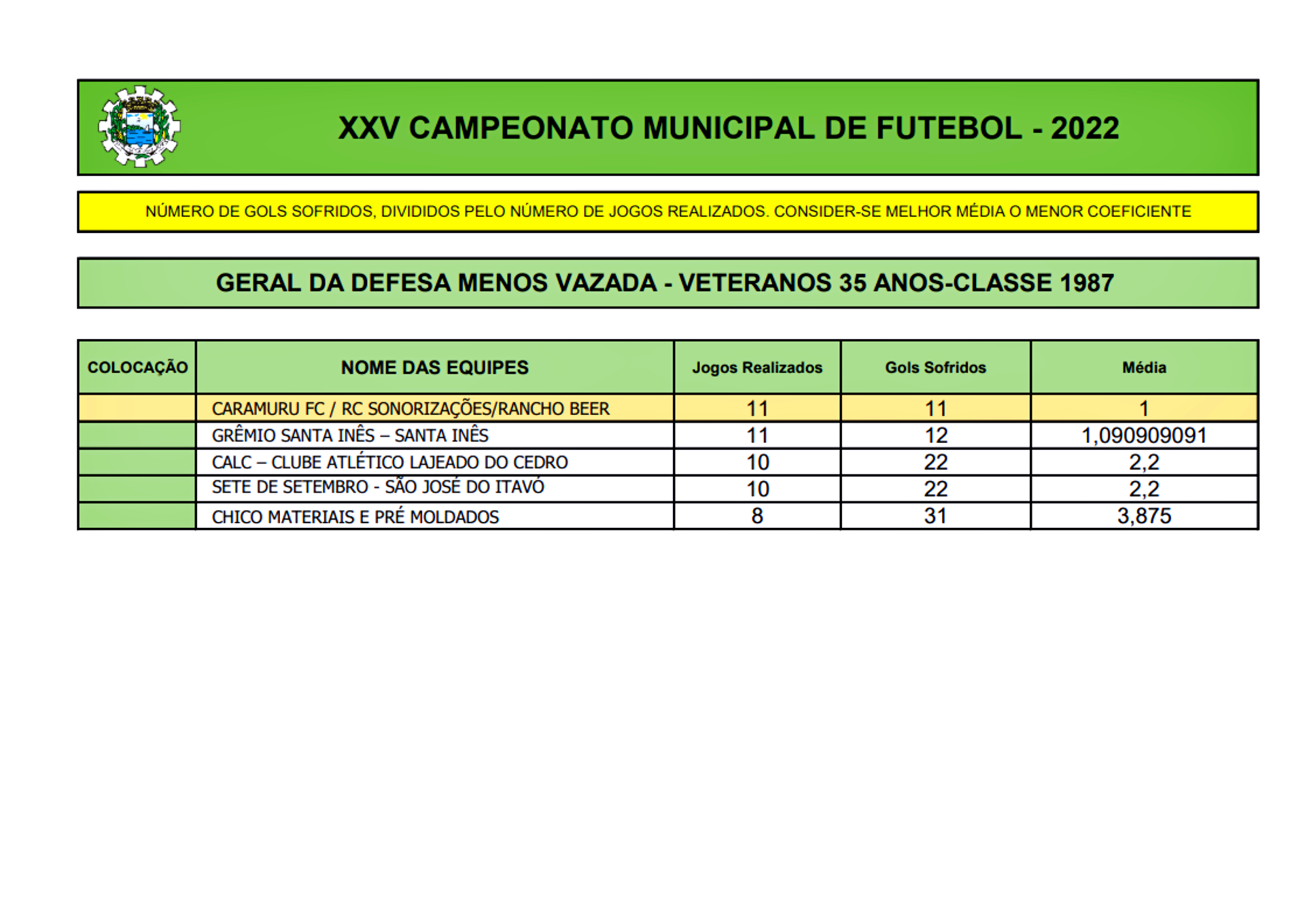 Para o Grêmio Santa Inês assinalou o gol Jonas Konrad e o empate veio com gol de Leandro Walker (Tubinho) para o Caramuru Futebol Clube.