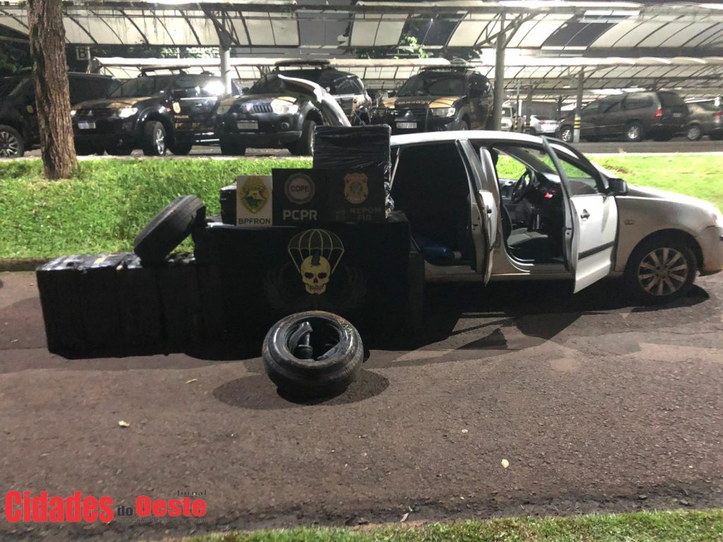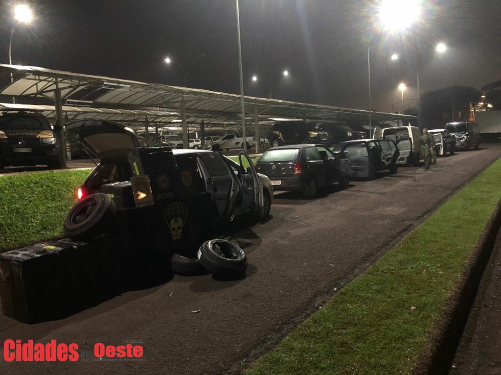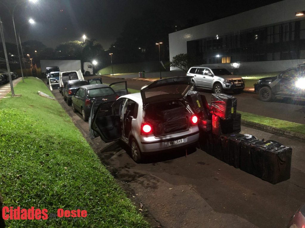 Um indivíduo foi preso no local, onde foram encontrados quatro veículos carregado com cigarros e pneus contrabandeados. Foram encontrados cerca de 100 caixas de cigarros estrangeiros e 15 pneus.